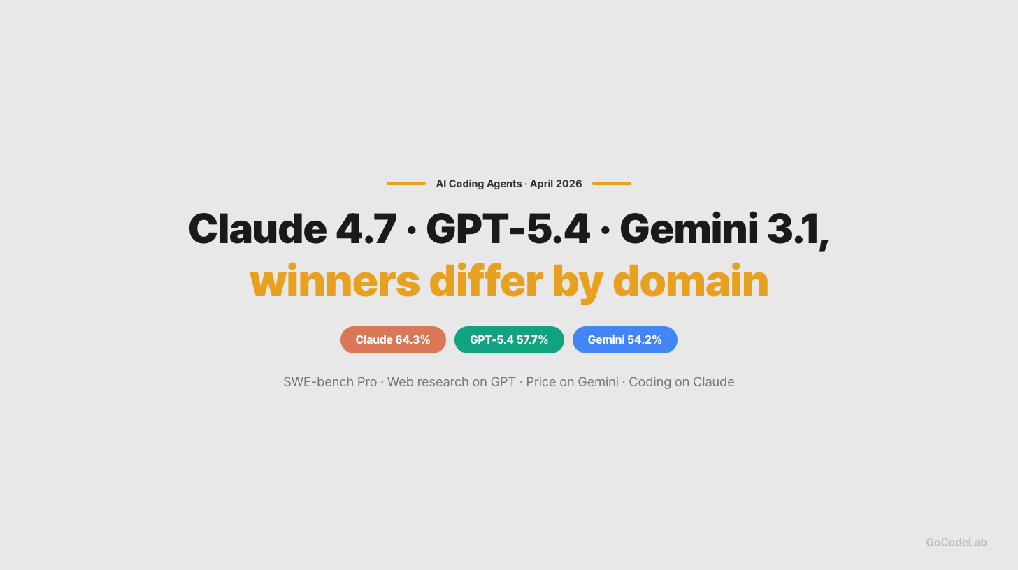 Claude Opus 4.7 vs GPT-5.4 vs Gemini 3.1 Pro — The 2026 Coding Agent Benchmark