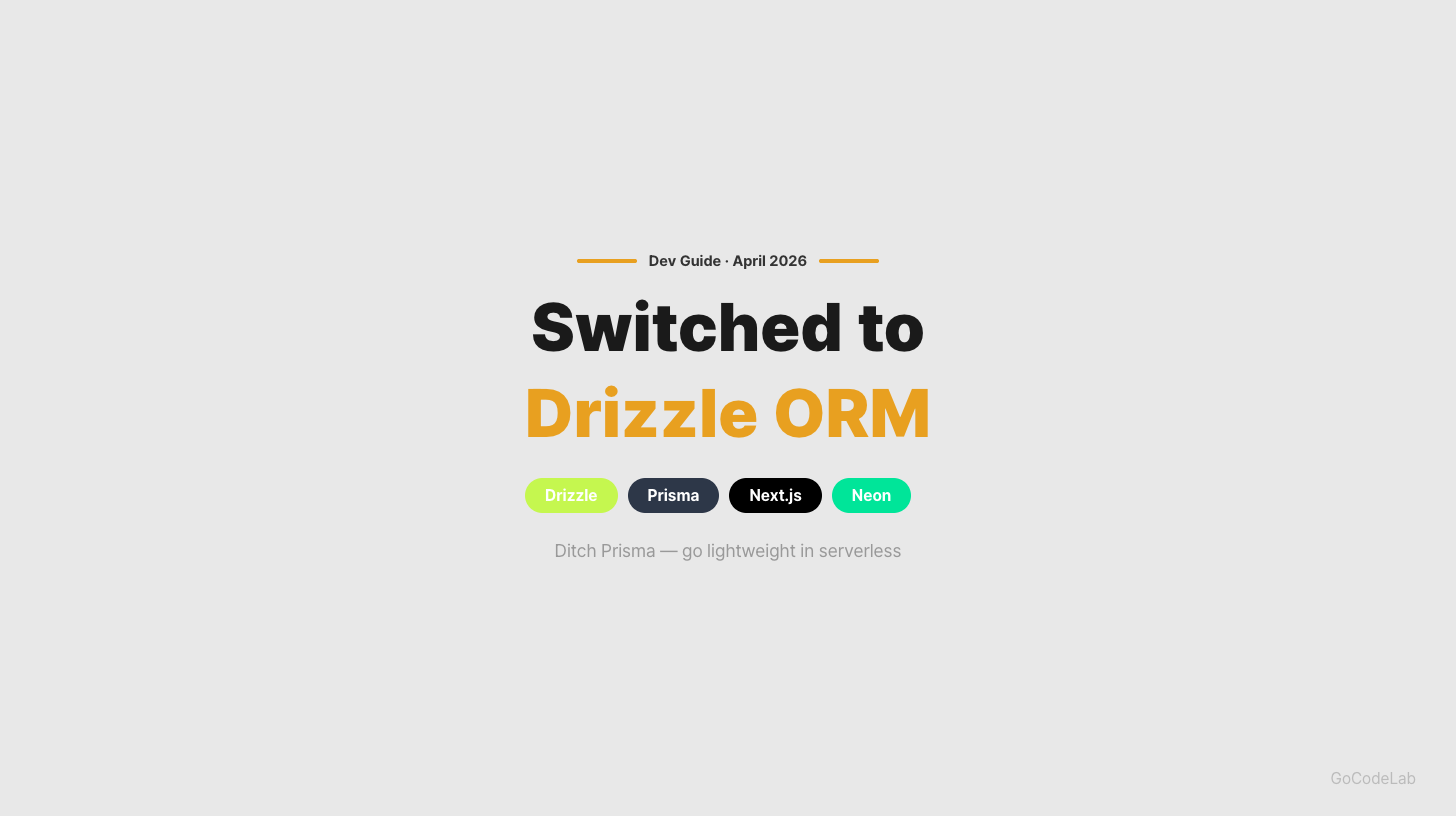 Drizzle ORM bundle ~50KB, Edge runtime support out of the box, Neon/Supabase/Turso integration. A hands-on guide to replacing Prisma in Next.js App Router + serverless environments as of April 2026.