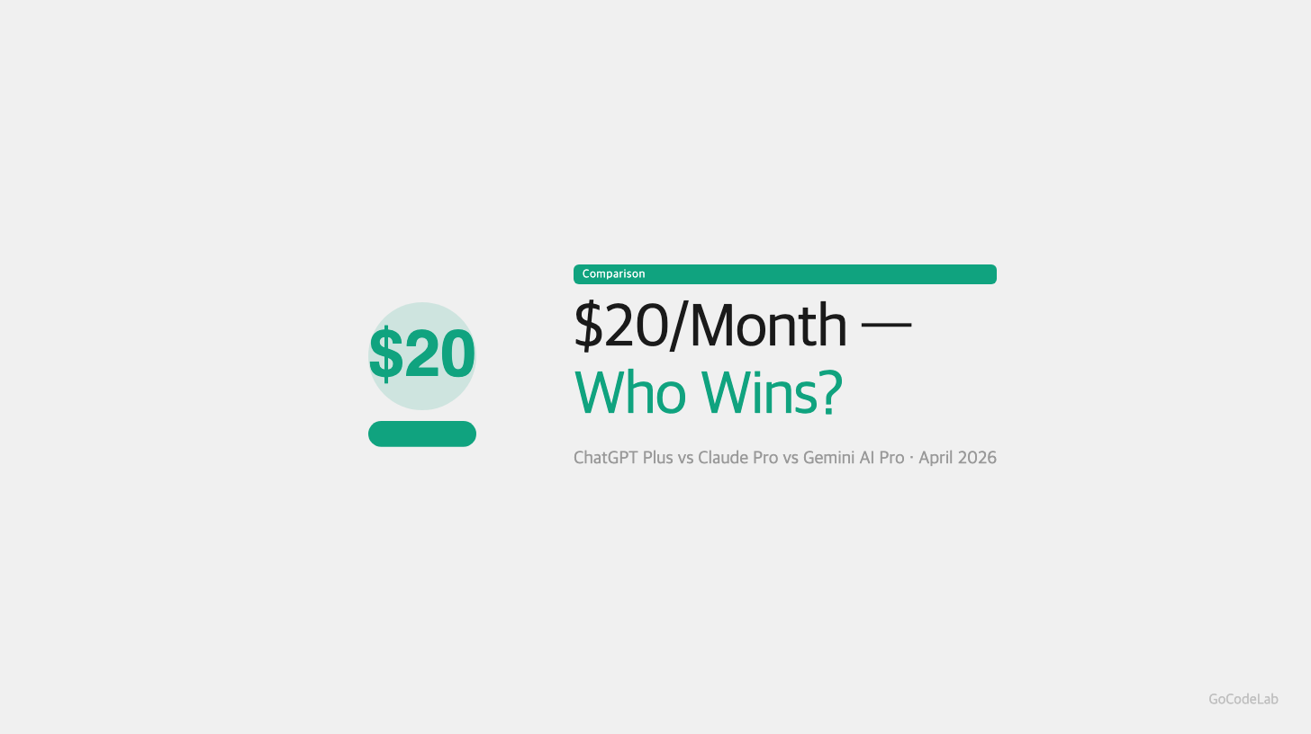 ChatGPT Plus vs Claude Pro vs Gemini AI Pro — $20/Month, Who Wins?