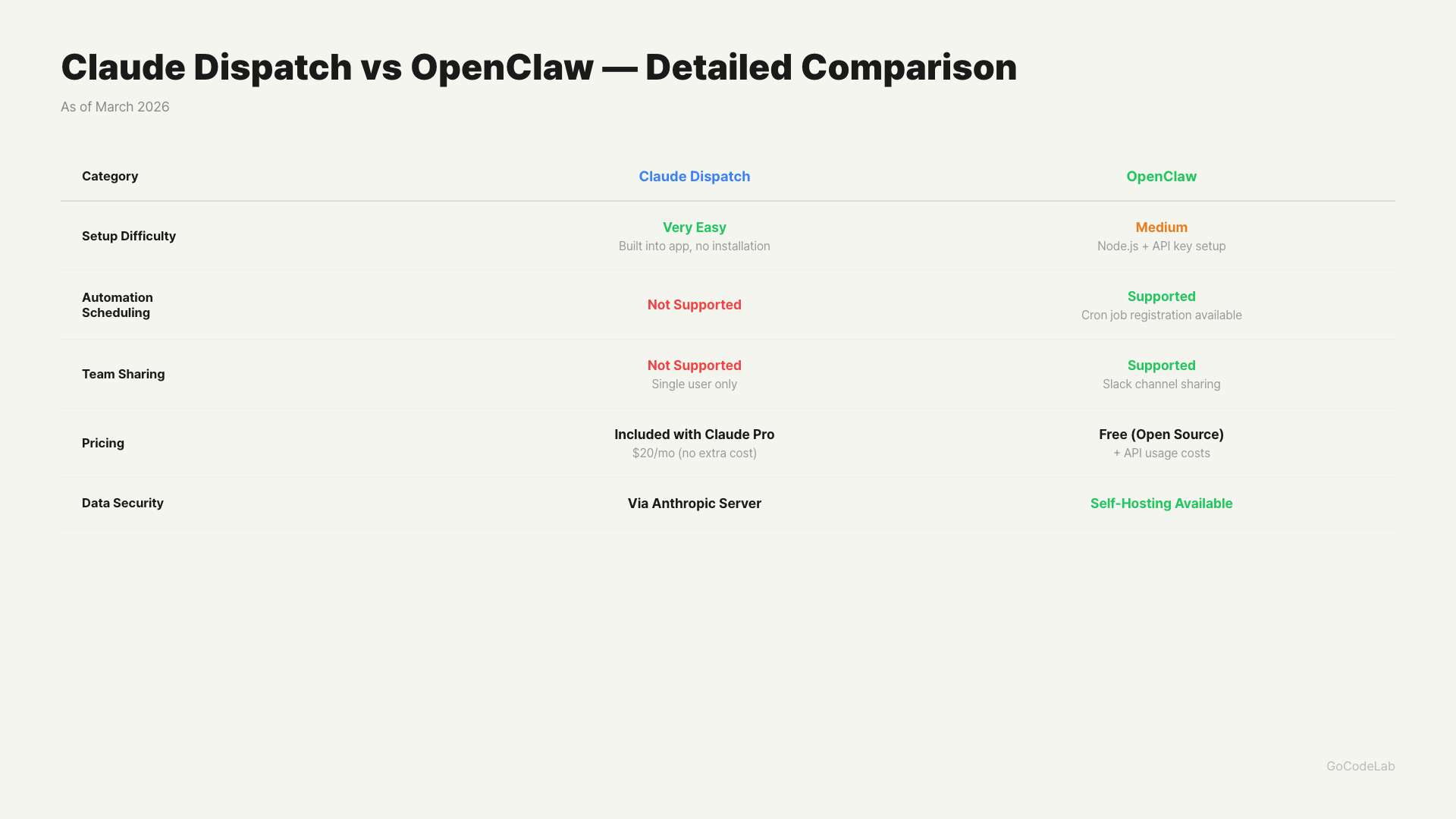 Dispatch for personal tasks, OpenClaw for team automation / GoCodeLab