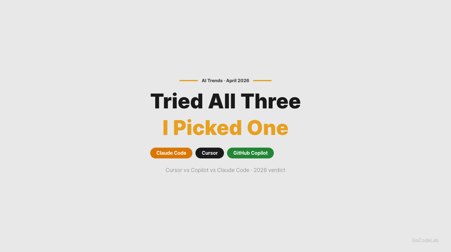 I ran all three: Cursor, GitHub Copilot, and Claude Code. IDE-native, terminal agent, extension plugin — different design philosophies, different results. Here's my conclusion on which one each type of developer should use.
