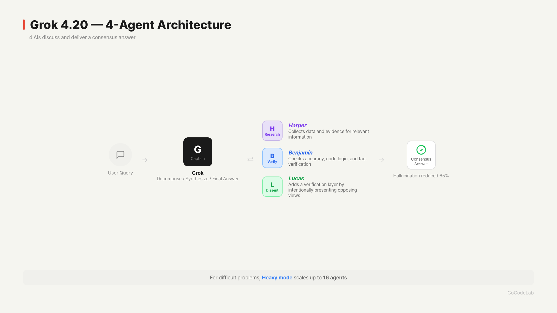 Lucas’s role is quite impressive. Trained specifically to present opposing views, it provides an extra layer of verification even when the other three agree. According to xAI, this structure contributed to a 65% reduction in hallucinations.