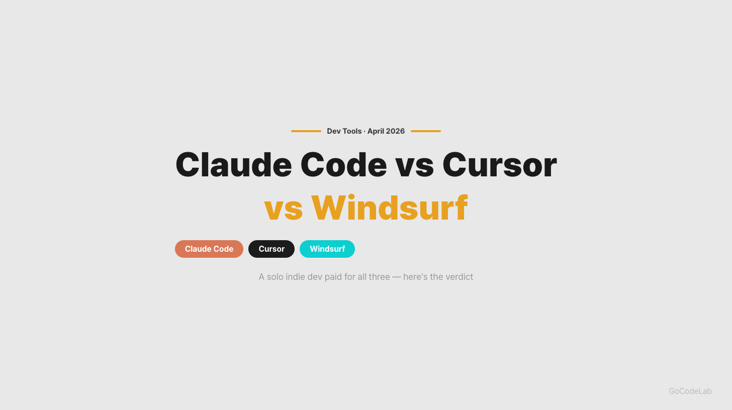 Claude Code vs Cursor vs Windsurf — A Solo Indie Dev Used All Three for a Month