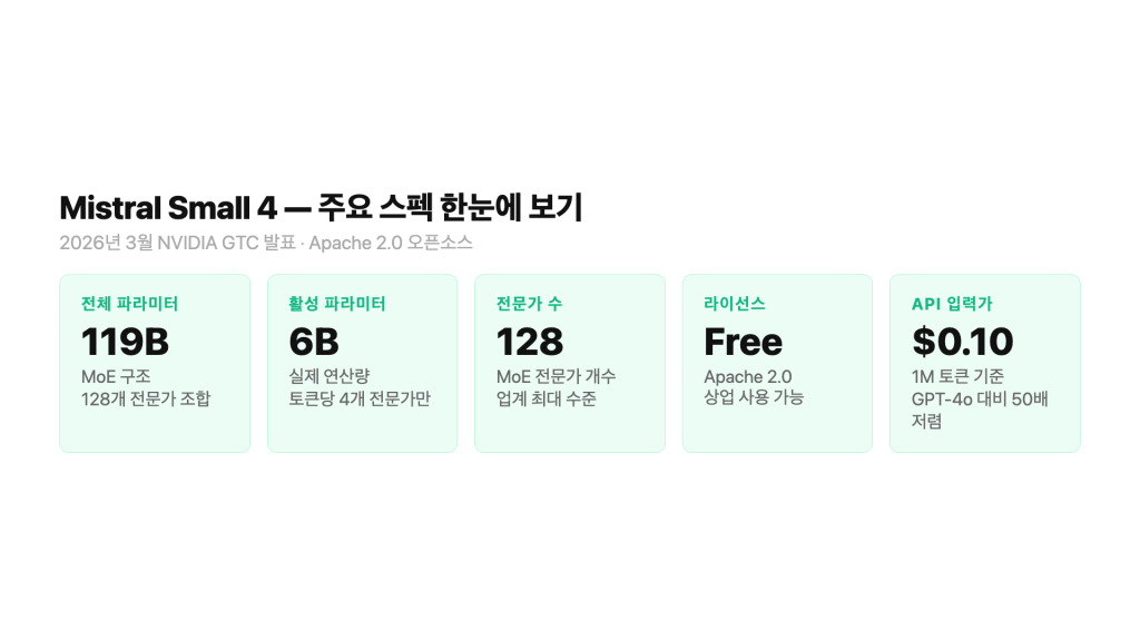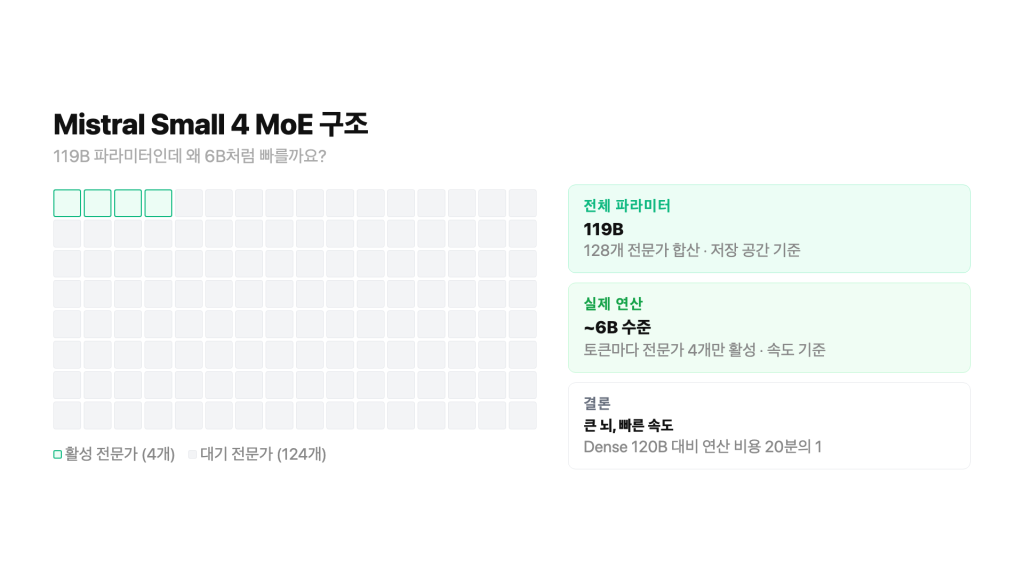 – Mistral Small 4: 119B 파라미터 MoE 모델, 실제 추론엔 6.5B만 사용