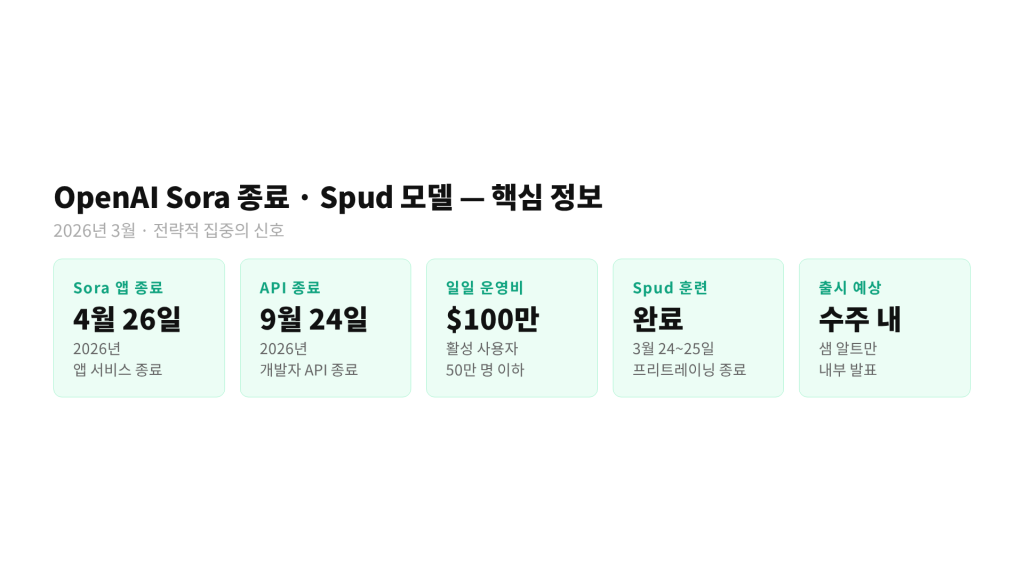 OpenAI Sora 종료 · Spud 출시 핵심 타임라인 / GoCodeLab