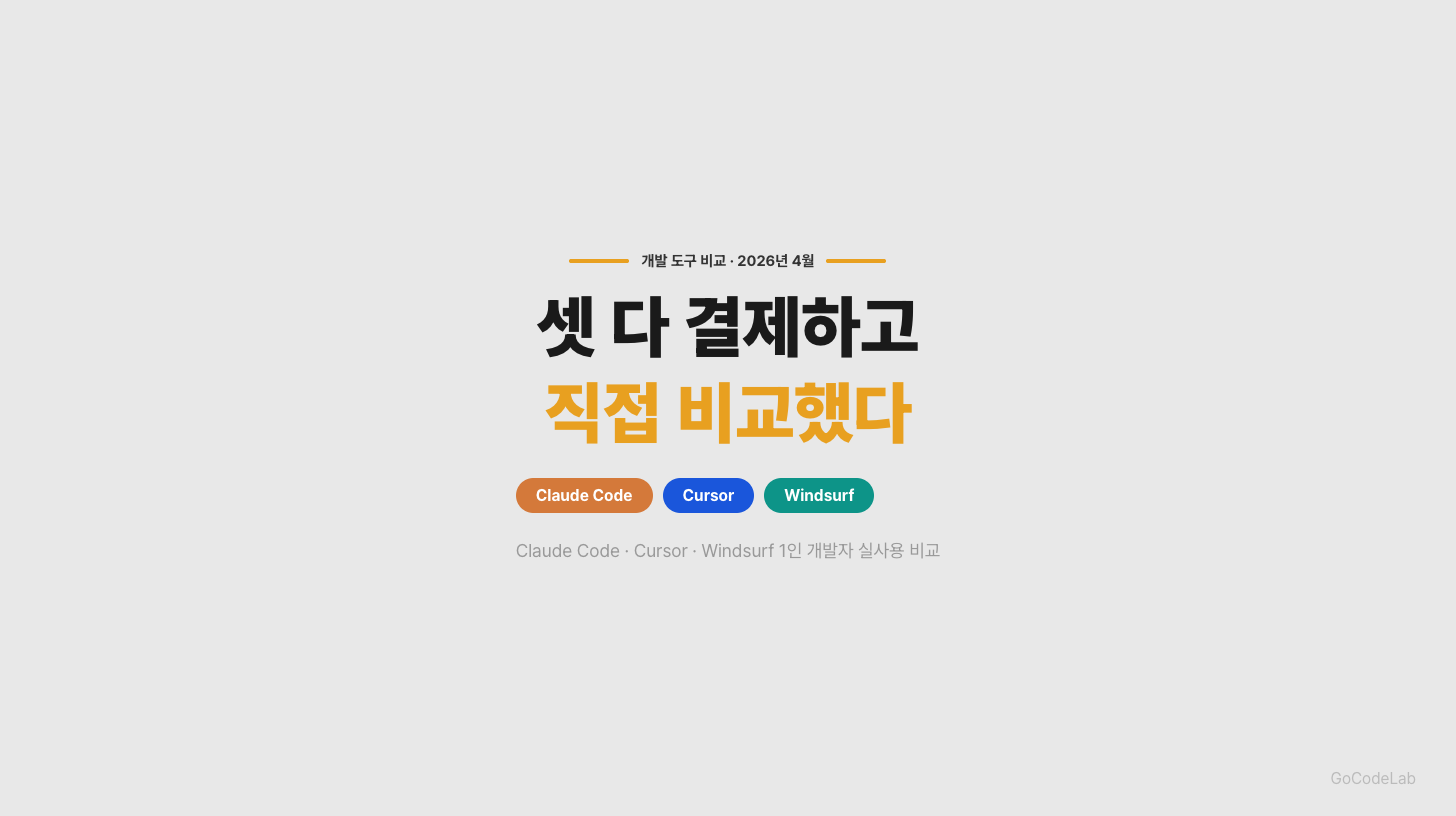 Claude Code, Cursor, Windsurf 셋 다 한 달 이상 결제하고 직접 써봤다. 자동완성·에이전트 모드·MCP·디버깅·실제 코딩 속도까지 1인 개발자 관점으로 비교했다.