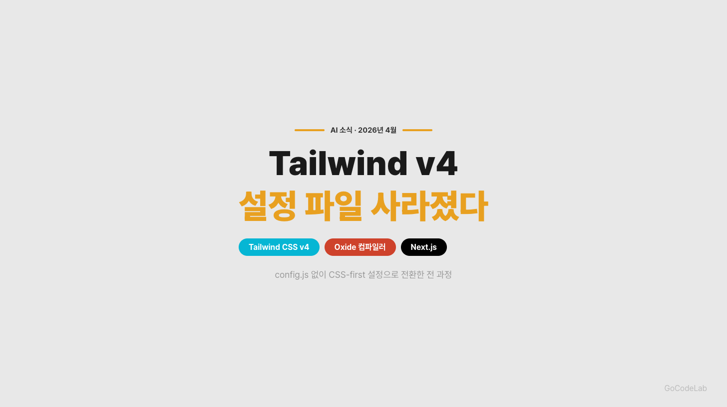 Tailwind CSS v4로 마이그레이션했다. tailwind.config.js가 없어지고 CSS 파일 하나로 설정이 끝난다. Rust 기반 Oxide 컴파일러로 빌드 속도가 5배 빨라졌다. v3에서 v4 전환 전 과정을 기록했다.